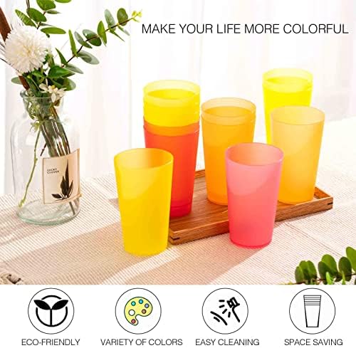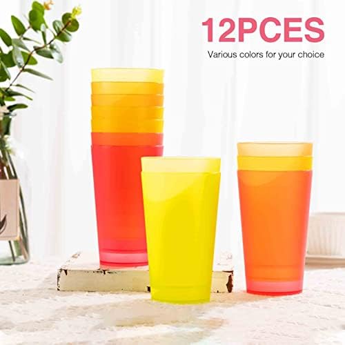 Value-for-money plastic cup set of 12 pieces, four colors (red, orange, yellow, green) with a capacity of 16 ounces, beautiful colors will not flow and fade.