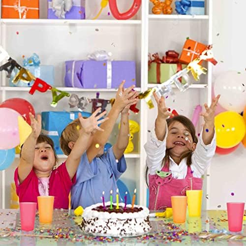 Packaging: 12-piece plastic water cup set (red, yellow, orange, green), 16 ounces in capacity, taking into account beauty and comfort, beautiful colors will not flow and fade.