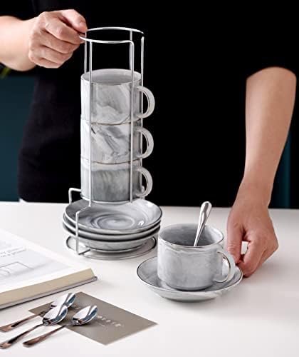 ❤BEST GIFTS FOR COFFEE LOVER: Our marble espresso cups set of 4 includes 4 marble espresso cups, 4 saucers, 4 spoons, a storage rack, and a beautiful gift box, it is the best gifts for coffee lover or family use.