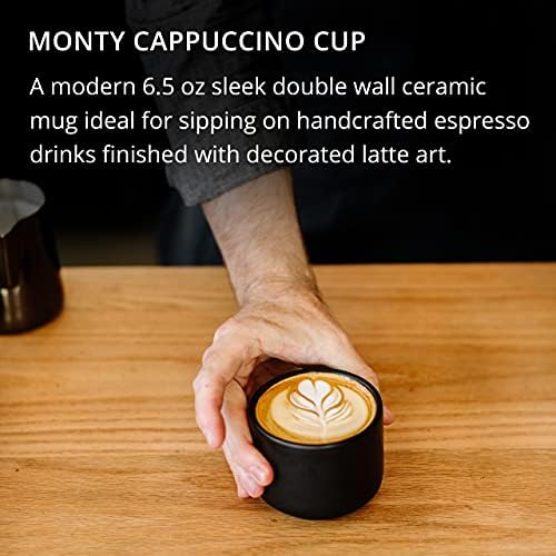 MONTY THE CAPPUCCINO CUP – A modern 6.5 oz sleek double wall ceramic mug ideal for sipping on beautiful, handcrafted espresso drinks finished with decorated latte art