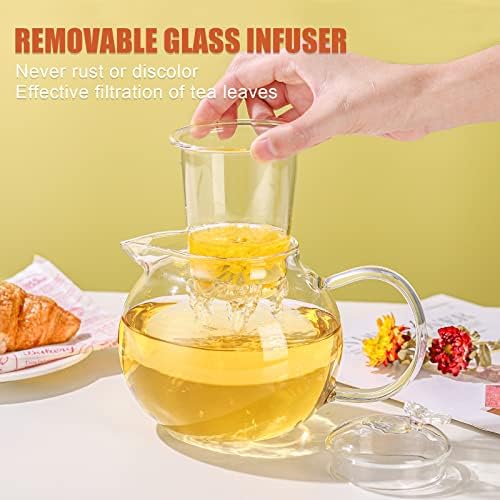 【SAFE WASHING】Safe for dishwasher top rack and microwave use;not for use with any metal utensils.Glass tea infuser,lid easily detachable cleaning.