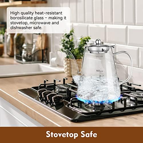 ☕☕【Removable Cover and Filter】: The Glass Tea Kettle with Removable Stainless Steel 18/10 Infuser will become your favorite way to make tea. The infuser comes with a handbasket-style handle that makes it simple to remove the infuser.