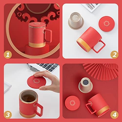 Chinese style pattern on the surface can make this teacup more unique, suitable for home or office use. Smooth surface, good touch, and the humanized design of the handle is convenient for your grip. The tea filter lid cup is, it can be placed more stably and safely on the table.