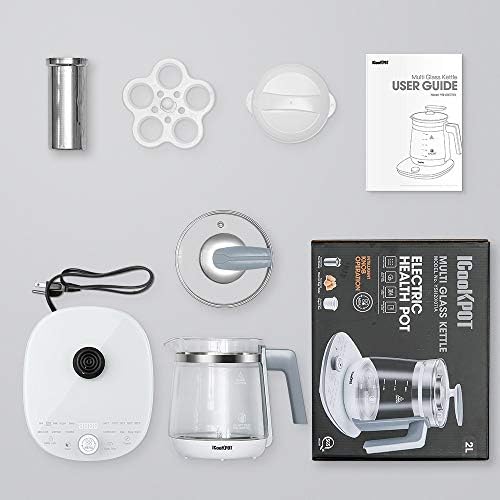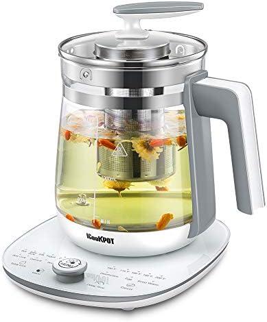 ICOOKPOT Electric Kettle Temperature Control Glass Tea Kettle Programmable Control Tea Pot, 2 Liter Stainless Steel Tea Maker & Coffee Kettle with Tea Infuser, Egg Cooker and Yogurt Box, WHITE