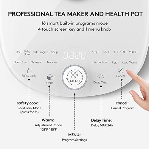 [Easy to Use]: This electric tea maker is easy to use, rotate the MENU knob in the clockwise or anticlockwise directions to choose your desired function without setting up time or temperature, and then you just need to waiting for the cooking time end and enjoying the food.