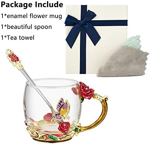The enamel craft enamel glass mug has an elegant style with daisy butterfly and red rose flower 3D designs. Never fade as time passed. Attractive and vivid flower handle and bottom design, classic but refined and the noble stylish look is functional yet decorative.