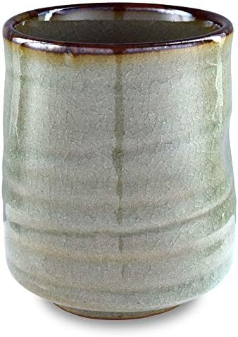 Mino Ware Traditional Japanese Yunomi Tea Cups, Set of 2, Shibukusa for Green Tea, Matcha TeaThere are many famous Japanese dishes, such as “sushi”, “ramen noodles”, “tempura”, “maccha (green tea)”, and “sake”. If we are asked to think “what is Japanese food?”, food eaten regularly come to our mind immediately. There is a variety of cultures in Japan, and each culture is different depending on the region and the age. By using a suitable tableware depending on the dish, you can enhance the flavor of it or make it easier to cut and separate the food.Porcelain is made by firing a mixture of clay powder made by crushing stones and fired at a temperature over 1300 degree. Most of porcelain is thin and light, so a light clear metallic sound is made when tapping it, it allows light to pass through it. It is excellent in thermal conductivity, which makes it difficult to warm it up but has a capacity hardly getting cold.It has sharp and beautiful design, and most of tableware for general home use is porcelain.What is Mino ware?Mino ware is the Japanese traditional pottery, and approximately 60% of the tableware used in Japan is Mino ware. For example, there are exterior garden supplies such as flower pots and water tanks, interior materials such as tiles for walls and floors, and sinks.Because of its quality with the beautiful design and high functionality, Mino ware is popular not only in Japan, but in overseas. It supports family life in Japan and is very popular among collectors.Weight: 210g,Height: 3.5″ (88 mm), Diameter: 2.7″ (70 mm). Material: Porcelain. Microwavable and Dishwashable. Made in Japan. Suitable Dish (Drink): Green Tea, Matcha, Water, Coffee, Milk, Soup, etc.