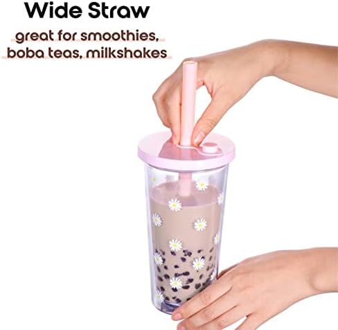 💖 CUTE & ECO FRIENDLY DESIGN: Our daisy patterned boba tumblers with blue lids and blue straws are uniquely designed boba tea cups! A reusable boba cup with straw helps eliminate single use plastics and is perfect for at home boba enthusiasts.