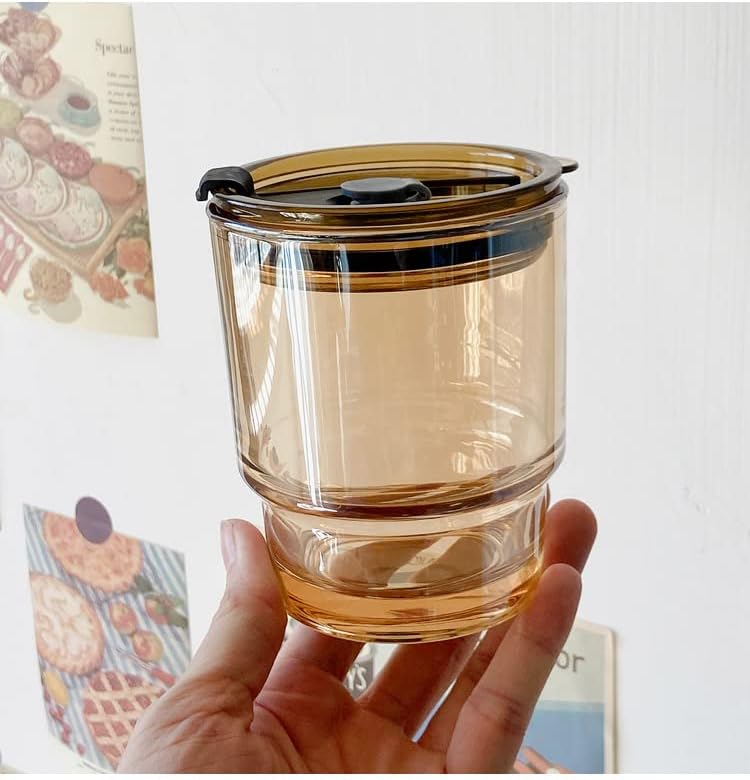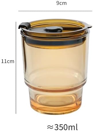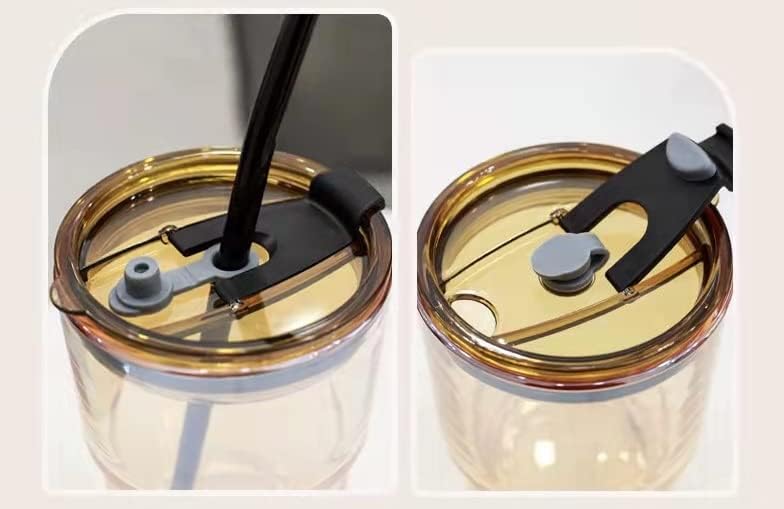 RYUHYF Straw cup, coffee cup, glass with straw and lid, double drink cup, milk cup, tea cup, ice coffee cup, car cup,set of 1 (12oz, Amber)