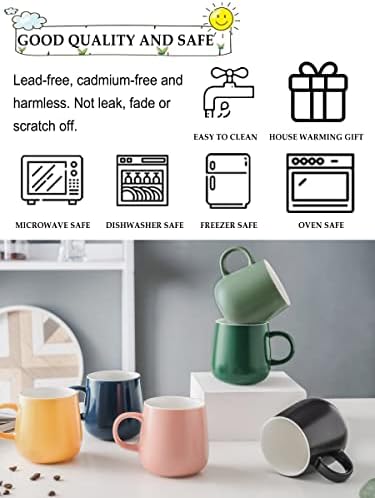 [GOOD QUALITY & SAFE] – Ceramic coffee cup by T-WARE is made of high-quality porcelain and high temperature, which is lead-free, cadmium-free and harmless. The microwave safe mug does not leak, fade or scratch off. OVEN, MICROWAVE, REFRIGERATOR SAFE.