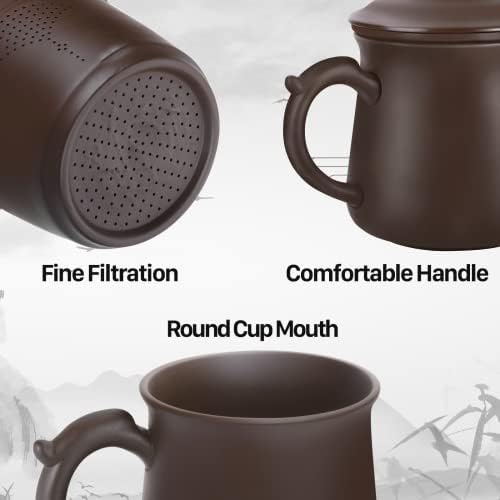【High Quality Material】The tea infuser mug is made of raw ore purple sand mud, which is fired at high temperature, making it a durable and elegant tea cup with lid.