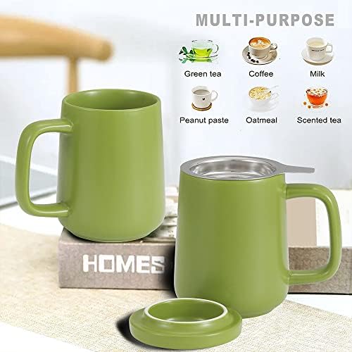 𝗟𝗔𝗥𝗚𝗘 𝗖𝗔𝗣𝗔𝗖𝗜𝗧𝗬 – Ceramic Mug with lid and Tea Infuser Cup has a full capacity of 16 Ounces, which is also suitable for your daily scented tea, brew coffee, milk, cereal breakfast, and other beverages. This Large coffee mug is great both on a table at home and your desk at work.