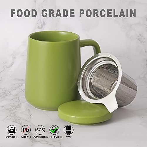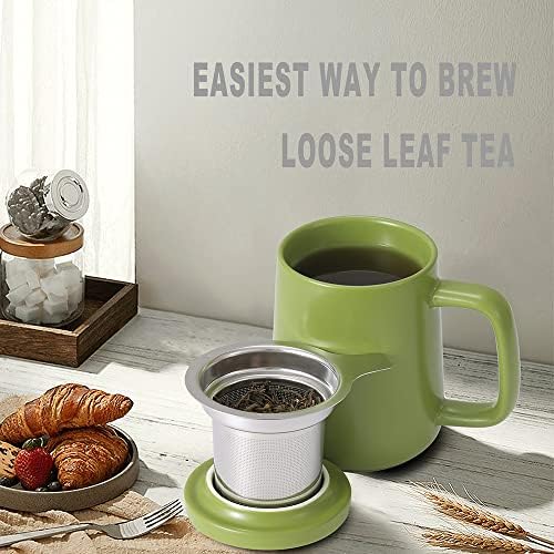 𝗤𝗨𝗔𝗟𝗜𝗧𝗬 𝗖𝗢𝗡𝗦𝗧𝗥𝗨𝗖𝗧𝗜𝗢𝗡 – Our loose leaf tea steeper is made with 304 Food Grade Stainless Steel. Cup handle, lid and the body are made of lead-free, cadmium-free, high-quality ceramic. The large handle is designed ergonomically to give you a comfortable and sturdy grip.