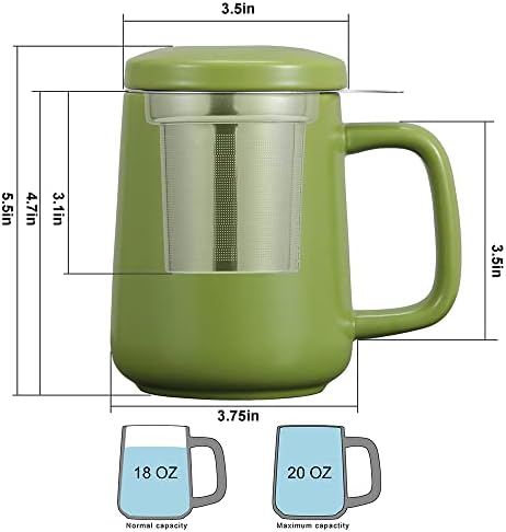 Extra fine infuser Ceramic cup + 304SLS filter + ceramic lid Size: TW3.4 inch + BW3.7 inch + H4.7 inch Capacity: 17oz