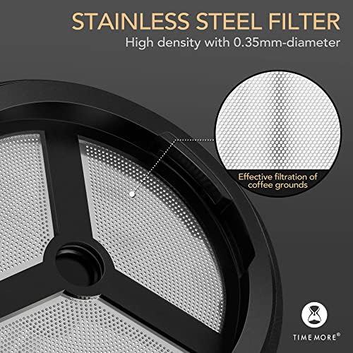 NO MORE SEDIMENT – A high-density stainless steel filter consists of 0.35 mm micro-mush that ensures no coffee grounds getting in the coffee to get a cup of incomparable delicious, smooth and full-flavored coffee.