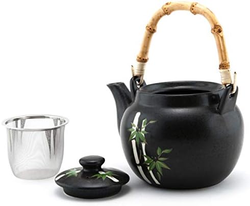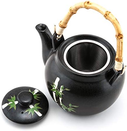 Traditional Japanese Style Ceramic Teapot with Rattan Handle 42 fl oz Teapot with Stainless Steel Infuser Strainer for Loose Leaf Tea (Bamboo)