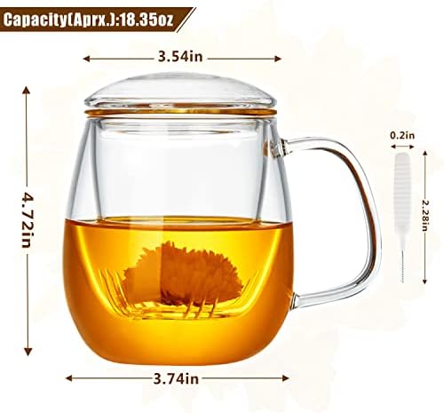 All-in-one Clear Glass Tea cup with Infuser – This infuser glass cup consists of a clear glass cup, glass infuser, glass lid and a small brush for washing the infuser. Flip the lid over and it serves as a coaster for the strainer. This allows you to save the tea leaves and steep them multiple times. It suitable for steeping loose-leaf tea, rose tea, black tea, green tea, blooming teas, oolong, fruit tea, coffee, etc. It is also large enough to handle large-leaf teas like some oolong varieties