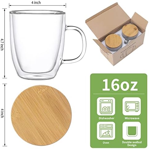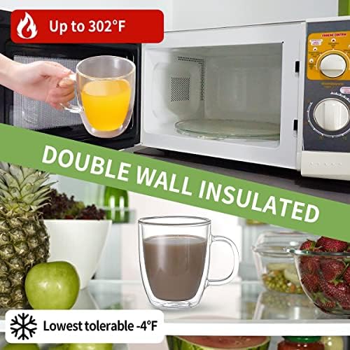 Versatile Use: 16oz double-walled coffee glasses are not only perfect for hot drinks like Cappuccino, Latte; but also great for cold drinks. These mugs are easy to clean and great for the home, office, any cafe, restaurant and pub.