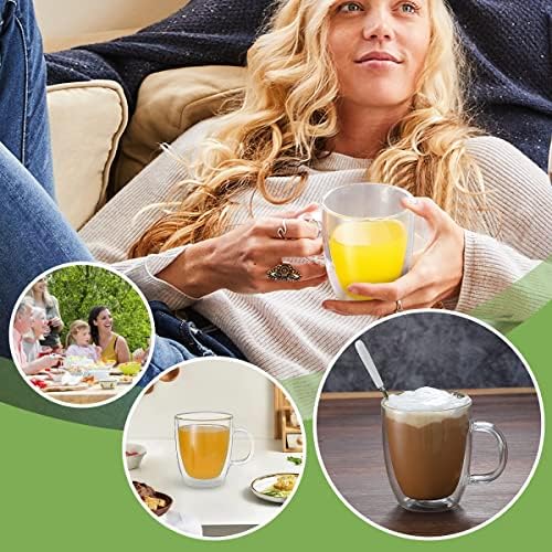 Easy to Hold: Heat resistant glass cups with ergonomic handles that will not cause discomfort to hold. It is very easy to use for enjoying not only hot drinks like Cappuccino, Latte; but also great for cold drinks.